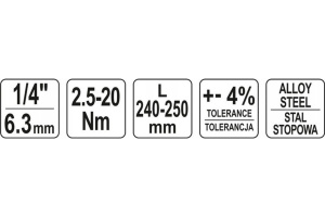 YT-07511 Ключ динамометрический 1/4" 2,5-20Nm
