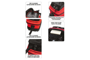 Предназначен для использования на строительных площадках, в столярных и малярных мастерских. Соответствует самым высоким стандартам в удалении мелких загрязнений, таких как гипс и пыль, деревянная стружка.