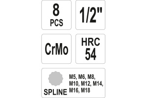 1. Головки SPLINE - 8 шт.: М5, М6, М8, М10, М12, М14, М16, М18.