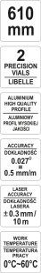 Точность спиртовых пузырьков: 0,5 мм/м = 0,027° – нижняя поверхность; 0,75 мм/м = 0,043° – верхняя