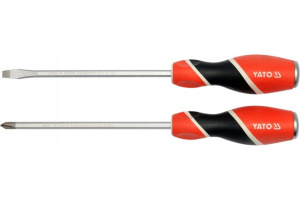 Рукоятка изготовлена из материалов различной твердости для предотвращения соскальзывания руки и имеет эргономичную форму. Специальная, усиленная конструкция рукоятки позволяет бить по ней молотком. Отвертки предназначены для тяжелых монтажных работ в промышленности и в ремесле.