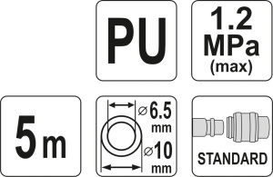 YT-24204 Спир. шланг PU/быстрос. cоед. 6,5X10х5м