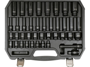 YT-10555 Набор головок торцовых 1/2 дюйм, 9-30 мм, ударные с переходниками, 40 пр