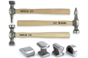 В набор входят: молоток с заостренным концом, молоток с финишным концом, а также стягивающий молоток. Правки для кузовов имеют 4-е разные формы под любую ситуацию: выпуклая, запятая, двухсторонняя и лопатка.