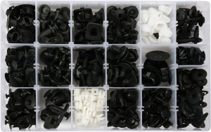 Клипсы / пистоны YATO упакованы в удобный пластиковый органайзер с отдельными отсеками под каждый тип крепления.