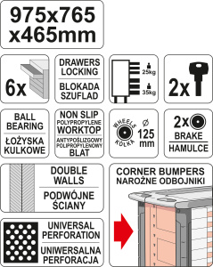 Максимальная нагрузка на ящик 25 кг (3 верхние) 35 кг (3 нижние)