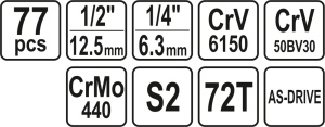YT-38781 Набор инструментов 1/4'' и 1/2'' 77пр