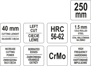 YT-1960 Ножницы по металлу (левые) 250мм