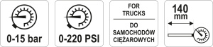 YT-24301 Манометр для грузовых автом. 0,5-15 бар