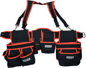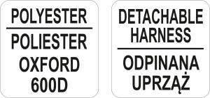 Длина основного ремня, застегивающегося на металлическую пряжку, составляет примерно 1280 мм. Он соединен с широким ремнем для переноски, закрепленным на широких подтяжках. Привязь уравновешивает нагрузки, перекладывая их с бедер на плечи.