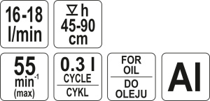 YT-0712 изготовлен из легкого алюминия, а его производительность составляет 16-18 литров в минуту, вес равен 2,15кг, высота 45/90см.